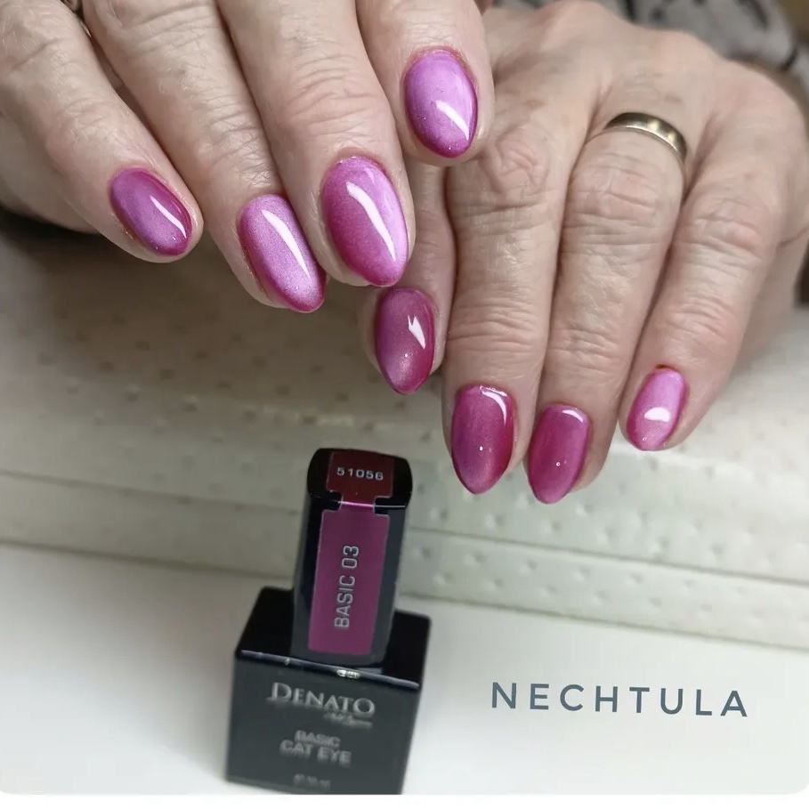 CAT EYE Basic 03 v sýtoružovom odtieni vytvára pomocou magnetu jemný efekt mačacieho oka, ktorý na nechtoch pôsobí prirodzene, luxusne a veľmi vkusne.