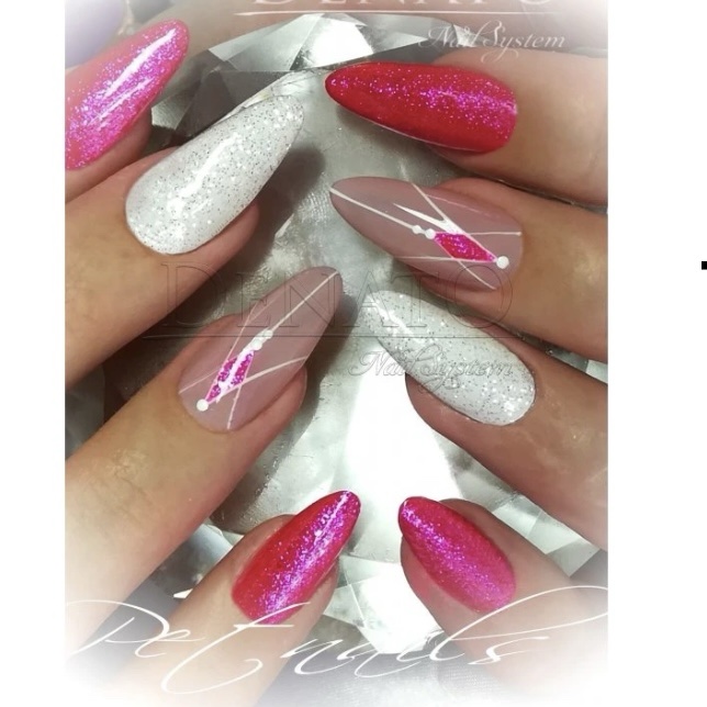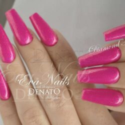 Stálofarebný výpotkový efektový UV LED Gél magenta farby s nádherným diamantovým efektom.